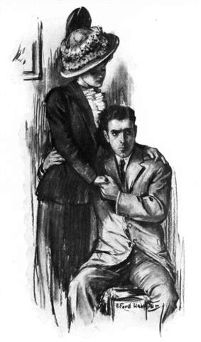 Balancing himself on the edge of the curb, the bluecoat stared after her in undisguised admiration until the cab swung around the corner; then he bestowed a curious glance on the house whence she had come. He saw that the door was half open and that a man's figure stood revealed in the soft light of the hallway. One hand was on the door knob, one foot was thrust forward as if the man were uncertain whether to plunge after her. Evidently he decided against venturing out, for he stepped back into the vestibule and shut the door.