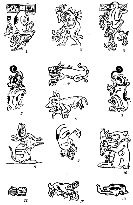 Before taking up the different animals in the codices it may be well to consider some of the more common ways in which the figures occur and their connection with the surrounding figures.