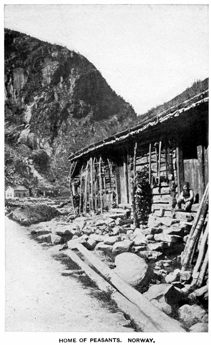 Then he wandered far as a travelling harper, letting the child out when they came to solitary woods, and when she wept and moaned silencing her by striking the strings of the harp. After long journeying he came to a cottage in Norway called Spangerhed, where lived a beggar and his wife. Seeing a gold bracelet under Heimer's rags, and some rich embroidery sticking from the harp, the beggar and his wife killed him during the night and broke open the harp. They found in it the wealth they sought, but the discovery of the pretty little girl troubled them.