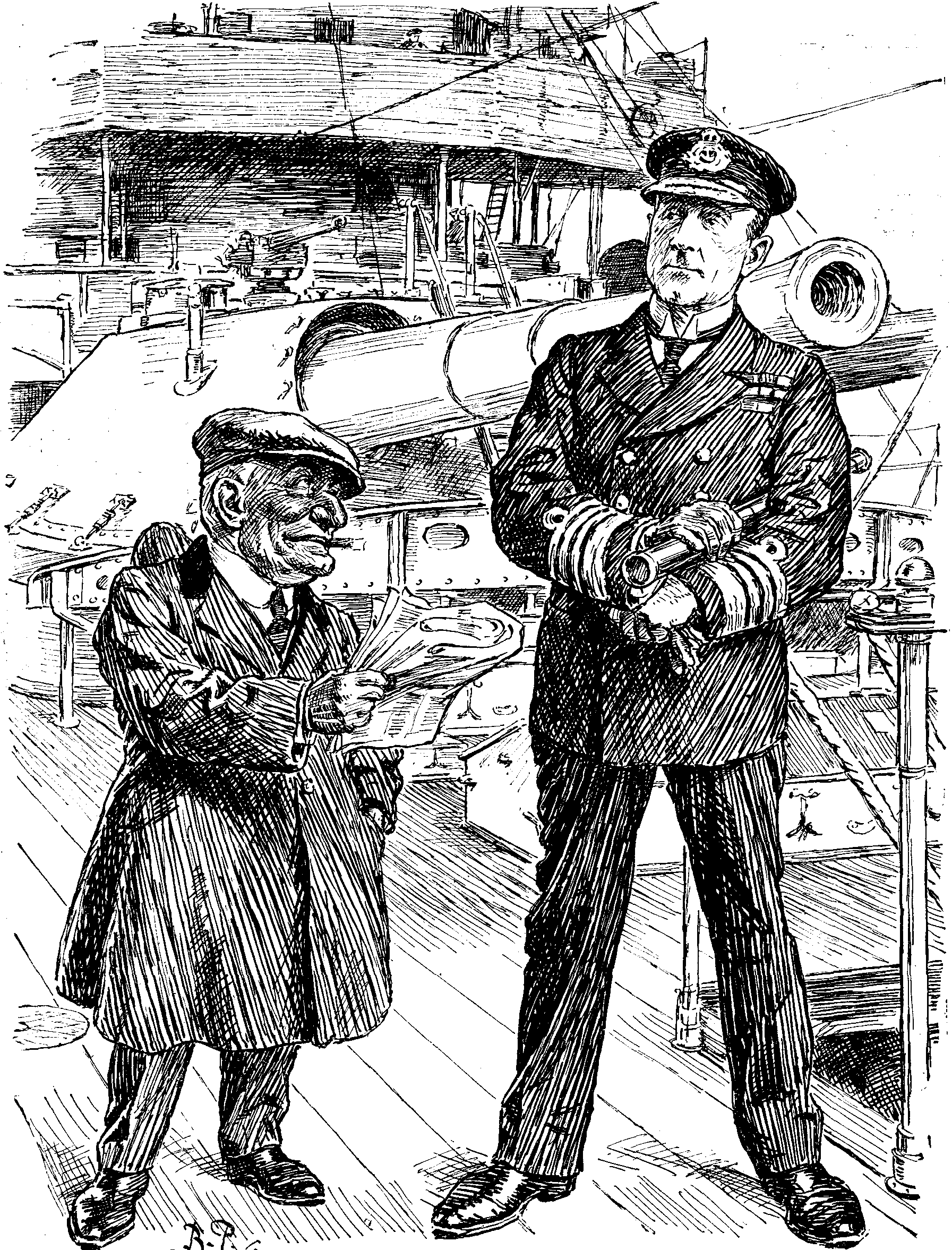 Our position seemed a little problematical. The left and right we satisfied ourselves about at once, but the centre was in a class by itself. We demanded an investigator, somebody with wide mine-sweeping experience preferred.
