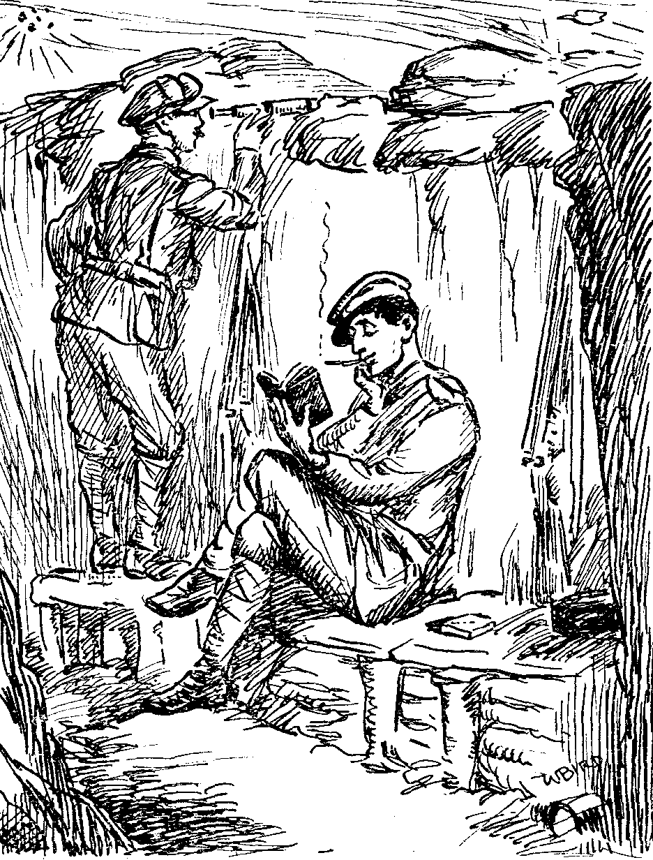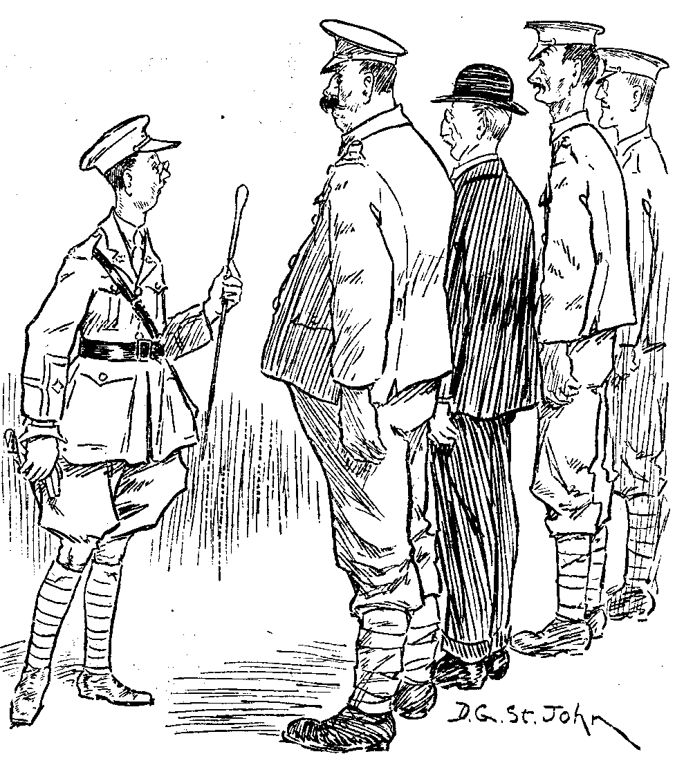 I have a sergeant, an honest upright man with no complications in his past, except that he is a Scot by birth and, happening to be there at the outbreak, enlisted in Canada. By reason of his uncertain movements he is unable to draw his food in the usual way, and yet insists, tiresomely, on being fed. So I said he'd better feed himself, and I claimed an authority for him to draw ration money in lieu of rations. Having weathered all the storms of an administrative correspondence, we eventually came by the authority itself. This was a great and happy day in the lives of myself and the forty-nine other officers who had by this time become involved in the affair. "Sgt. Blank is authorised to draw ration money in lieu of rations as from March 1st, 1916," I read to him, and sighed with relief. But it was a premature sigh. The trouble was only just beginning.