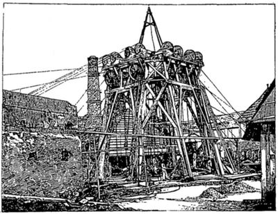 Nous voyons par-ci par-là fonctionner les excavateurs; ils sont de deux sortes: l'excavateur américain à une seule pelle, qui fonctionne comme les dragues marines. Le bout de la pelle est garni de trois pointes qui s'enfoncent dans le sol. La pelle se remplit de 2 mètres cubes de terre; élevée en l'air, on laisse tomber la paroi inférieure et la terre s'en va dans les wagons de décharge. Un excavateur (p. 018) peut ainsi enlever de 500 à 800 mètres cubes par jour. L'excavateur français est à godets sans fin, prenant la terre et la versant dans les wagons de décharge. Il remue à peu près le même nombre de mètres cubes que l'excavateur américain; l'un et l'autre coûtent environ 40,000 fr. Il y en a vingt-cinq en fonction en ce moment, mais le nombre en sera bientôt plus que triplé. Nous voyons aussi de nombreux ouvriers amener les wagons à main sur les petits rails mobiles: ce système rend bien des services.