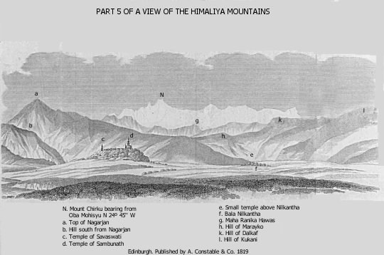 In the first place, during the years 1802 and 1803, I passed fourteen months in the country, mostly in the vicinity of Kathmandu, the capital; and I was accompanied by Ramajai Batacharji, an intelligent Brahman, from Calcutta, whom I employed to obtain information, so far as I prudently could, without alarming a jealous government, or giving offence to the Resident, under whose authority I was acting.