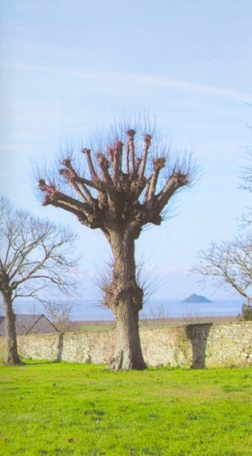 158. Saint-Léonard-de-Vains. Panorama printanier pris dans l'enceinte du prieuré. Depuis le prieuré, la baie du Mont s'ouvre aux pèlerins et autres voyageurs. Saint-Léonard est une bourgade très ancienne. Le saint du même nom y vécut au sixième siècle avant d'être élu huitième évêque d'Avranches en 578. La bourgade connut les invasions normandes au neuvième siècle. Après la conquête normande, elle entra dans le domaine ducal et fut fieffée aux seigneurs de Vains. En 1087, peu de temps avant sa mort, Guillaume le Conquérant la donna à l'abbaye Saint-Etienne de Caen. En 1158, Henri II confirma cette donation qui comprenait un manoir, des terres labourables et des vignes, ainsi que des salines avec le droit de pêche et de varech. Photo de Claude Rayon. [Claude-47]