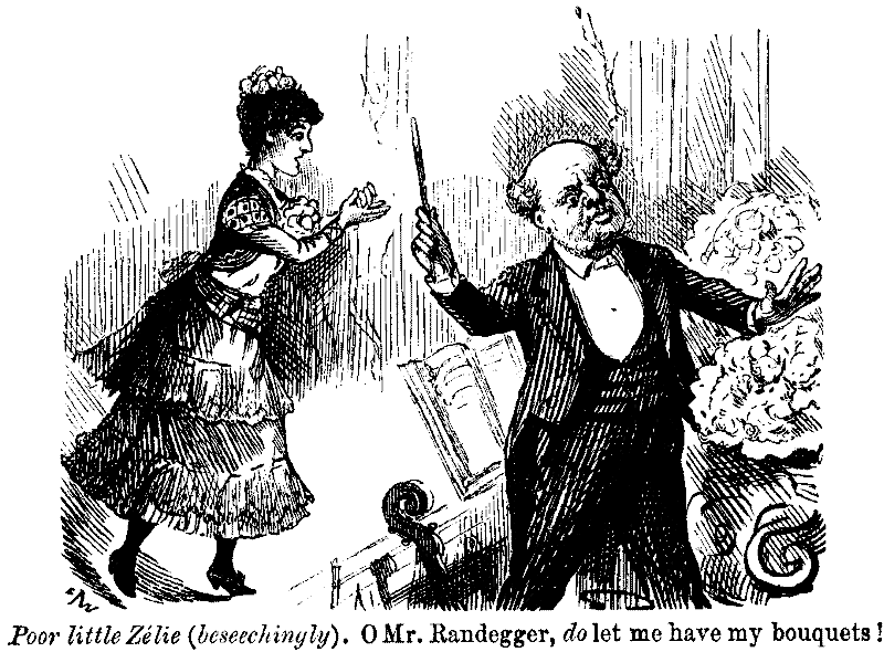 Monday.—Wood-cutting. Inconvenient having so many villas built all round park. Inhabitants inspect everything I do. Nasty little boys (whom I can see over their garden wall) shout "Yah!" and wave large primrose wreath. Irritating. Perhaps due to healthiness of air. Retire to another part of the demesne. Heavens! what is that erection? Looks like a Grand Stand, in a private garden, crowded with people. It is! Invited (by owner of garden) specially to view me and (I hear afterwards) my "celebrated wood-cutting performance," at a shilling a-head. Disgusted. Go in.