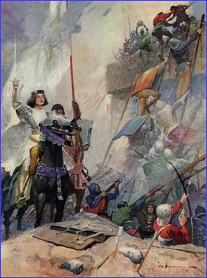 It is a mooted question which form of the name of Jeanne’s father is correct: D’Arc or Darc. It is the writer’s belief that D’Arc was the original writing, when it would follow that Jacques D’Arc would be James of the Bow or James Bowman, as he would have been called had he been an English peasant. For this reason the Maid’s surname has been given as D’Arc; though there are many who claim that Darc is the nearest the truth.