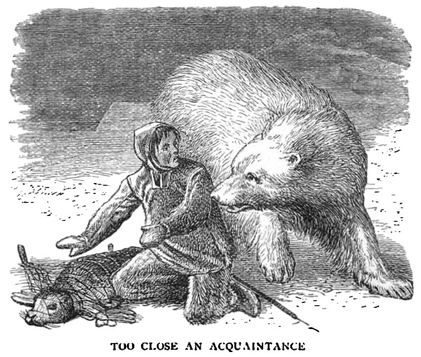 “‘Well, I’ve got an idea. Let us bear still more to the westward, and have a look at the island of Jan Mayen. We’ll get some fun there, I’ll be bound; it used to be quite uninhabited, you know, but I was told before leaving our own country that the Yankees—enterprising fellows—had resolved to build a walrus station there for summer months. Now, wherever you find Yanks in these seas, you find Yacks (a tribe of Innuits, of somewhat migratory tendencies). And between the two of them we ought to enjoy ourselves. Shall we go?’