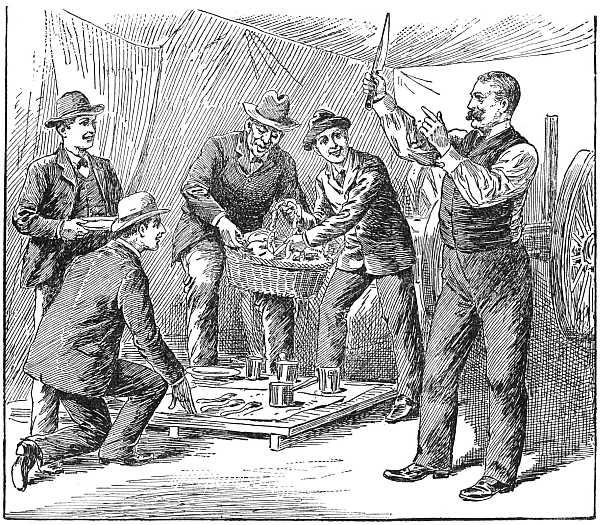"I can have the right to run what I want to,[11] every day the fair lasts, for ten dollars, an' now, if you lend me fifteen, I'll be all right," the boy cried as he burst into Nathan Hargreaves' store, just as the old gentleman was adding a trifle more sand to the sugar, in order to compensate for what might possibly have been spilled by the careless clerk.