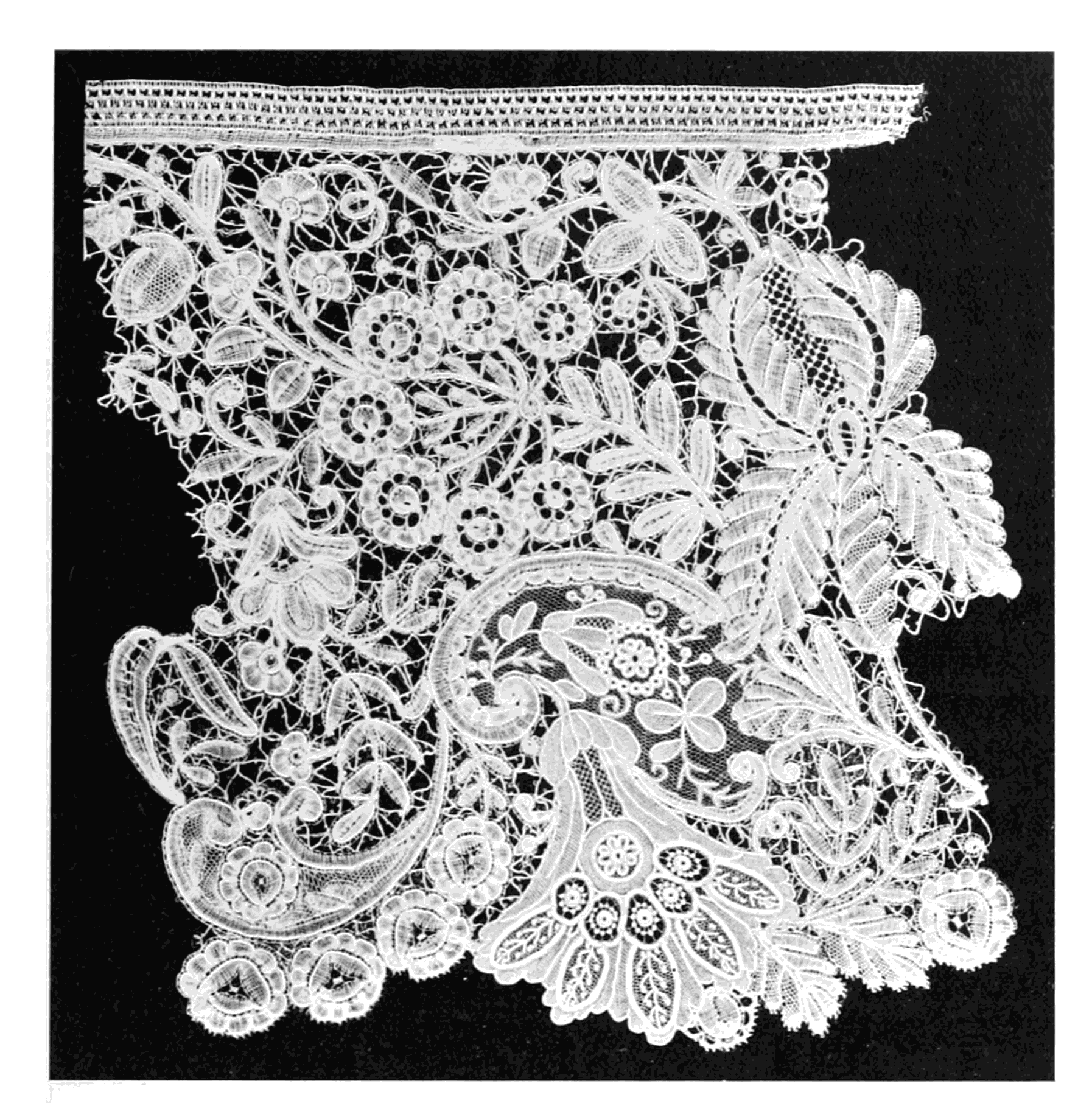 Venice guarded the secret of her methods with jealous care, and it was many years before the world was made familiar with the manner in which the exquisite floral designs, with their wealth of minor adornments, were worked out. Thus Italy was able to lay tribute upon the entire civilized world, and her coffers were enriched to overflowing from the receipts of the sales of lace to eastern, central and northern Europe.