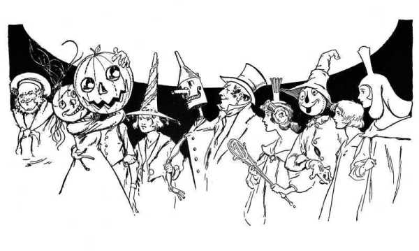When evening came Ozma ordered a great feast prepared, to which every Skeezer was invited. The village was beautifully decorated and brilliantly 275 lighted and there was music and dancing until a late hour to celebrate the liberation of the people. For the Skeezers had been freed, not only from the water of the lake but from the cruelty of their former Queen.