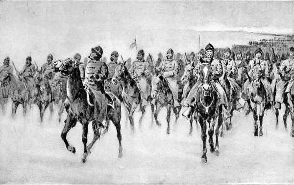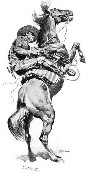 I selected Captain Mickler—the immaculate, the polo-player, the epitome of staff form, the trappiest trooper in the Dandy Fifth—and, together with two orderlies, we started. Mickler was mounted on a cow-pony, which measured one chain three links from muzzle to coupling. Mickler had on English riding-togs—this is not saying that the pony could not run, or that Mickler was not humorous. But it was no new experience for him, this pulling a pony and coaxing him to attempt breakneck experiments, for he told me casually that he had led barefooted cavalrymen over these hills in pursuit of Apaches at a date in history when I was carefully conjugating Latin verbs.