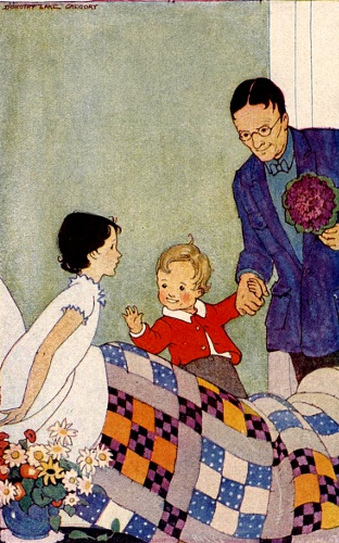 "This is Violet's room!" cried Benny. It was unmistakable. There were violets on the wallpaper. The bed was snow white with a thick quilt of violet silk. On the little table were English violets, pouring their fragrance into the room.