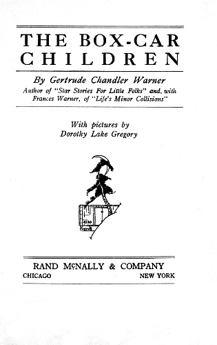 Project Gutenberg's The Box-Car Children, by Gertrude Chandler Warner This eBook is for the use of anyone anywhere at no cost and with almost no restrictions whatsoever. You may copy it, give it away or re-use it under the terms of the Project Gutenberg License included with this eBook or online at www.gutenberg.org Title: The Box-Car Children Author: Gertrude Chandler Warner Illustrator: Dorothy Lake Gregory Release Date: May 24, 2013 [EBook #42796] Language: English Character set encoding: ISO-8859-1 *** START OF THIS PROJECT GUTENBERG EBOOK THE BOX-CAR CHILDREN *** Produced by Greg Weeks, Mary Meehan and the Online Distributed Proofreading Team at http://www.pgdp.net from scans obtained from the University of Florida.
