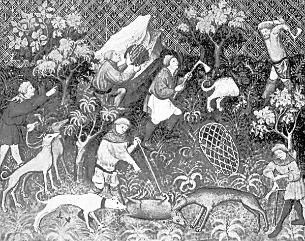 These animals were denizens of the British forests from the most remote ages, and probably were still numerous there at the time our MS. was penned. For although the Duke of York has only translated one of the eleven chapters relating to the natural history, chase, or capture by traps of the wild boar, and does not give us any original remarks upon the hunting of them, as he has of the stag and the hare, still it was most likely because he considered these two the royal sport par excellence, and not because there were none to hunt in England in his day. If the latter had been the case, he would in all probability have omitted even the chapter he does give us, as he has done with those written by Gaston de Foix on the deer, the reindeer, and the ibex and chamois (p. 160).