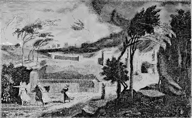 Sa Vue de Tivoli a de belles lignes; elle est bien choisie, les collines boisées qui s'étendent autour du château ont une grande fraîcheur.