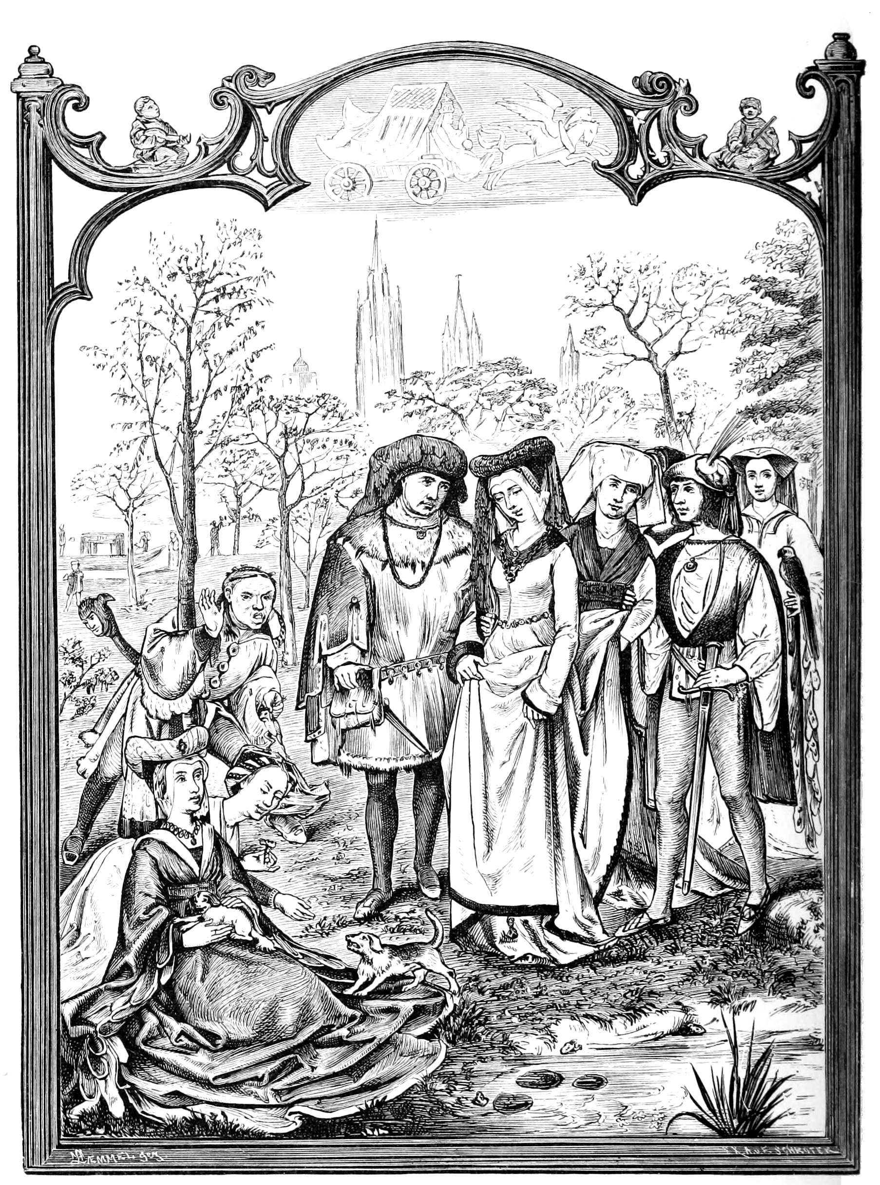 In the miniature pictures in manuscripts of the fourteenth and fifteenth centuries one often sees ladies represented with their Horae suspended in this way from their girdle.