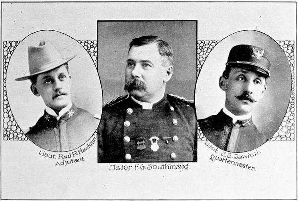 Meantime all was hurry and bustle at the state armory but order soon came out of all the apparent chaos and early on the morning of Tuesday, May 3d the local field and staff officers of the regiment and G, B and K companies, thus formed in the order of seniority of their captains, stood in the big drill shed, in full marching uniform with knapsacks packed and overcoats rolled up on them looking soldierly, and ready for whatever duty might call them to do.