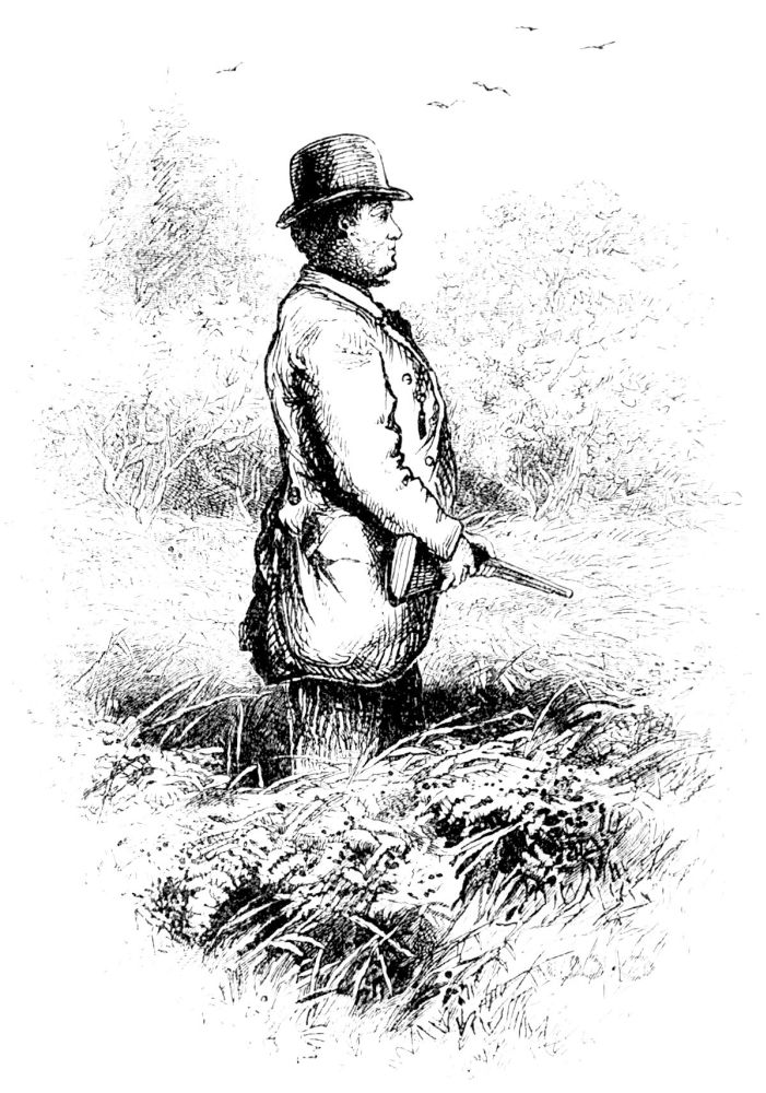 In personal appearance he would be a tall man were it not that he has contracted a slight stoop in the passage of the years, not from weakness or decay of nature, but because men who walk much lean forward somewhat, which has a tendency to round the shoulders. The weight of the gun, and often of a heavy game-bag dragging downwards, has increased this defect of his figure, and, as is usual after a certain age, even with those who lead a temperate life, he begins to show signs of corpulency. But these shortcomings only slightly detract from the manliness of his appearance, and in youth it is easy to see that he must have been an athlete. There is still plenty of power in the long sinewy arms, brown hands, and bull-neck, and intense vital energy in the bright blue eye. He is an ash-tree man, as a certain famous writer would say; hard, tough, unconquerable by wind or weather, fearless of his fellows, yielding but by slow and imperceptible degrees to the work of time. His neck has become the colour of mahogany; sun and tempest have left their indelible marks upon his face; and he speaks from the depths of his broad chest, as men do who talk much in the open air, shouting across the fields{11}