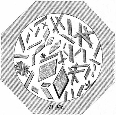 Dass die behufs des Kennenlernens mikroskopischer Objecte am Schlusse dieses Leitfadens gegebenen Beispiele, von denen mehrere dem praktischen Leben entnommen sind, keineswegs Anspruch auf wissenschaftlichen Werth machen sollen, darf ich wohl mit Hinweis auf den geringen Umfang dieser Schrift und ihren sehr geringen Preis nicht erst versichern.