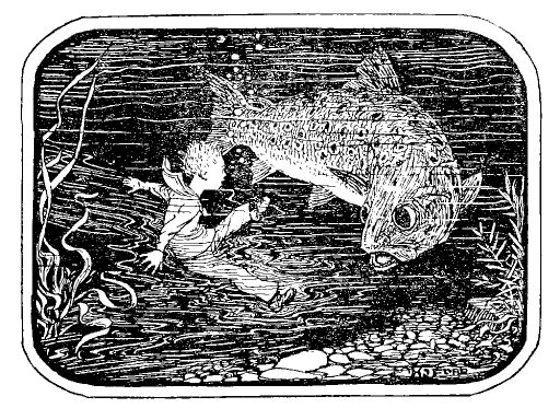 So out he ran, and there, on the threshold, was the pike, which had flopped its way all across the meadow when Noah called it, and it gave a fearful snap at David, and pulled off one of his shoes. The other stuck in a piece of marshy land near the bridge, but he didn’t stop for that, and just ran and ran.