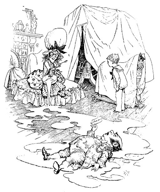 He never got further than that because, if it proved to be Mr. Winfall, Mr. Winfall ate him whether he had an apple inside or not, and if it was Grandmamma Apple-tree, she was so indignant, as every proper female should be at being taken for a man, that she began abusing Colonel Dumpling in a red voice if she was ripe, and a green one if she wasn’t, and gave the whole show away. So she lost an arm or a leg if there were many people in the house, or a finger or two if father and mother were alone, and Colonel Dumpling said to his regiment: