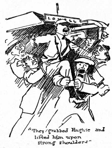 “Eyah! Eyah! Hughie, RAH-RAH.” A wiry red-haired boy about twenty-three years old swung lightly from the train with a big valise in his hand into a crowd of college boys in caps and heavy ulsters. They gathered round him at once, and while one crowd took charge of his valise, he was lifted on to the shoulders of a half dozen fellows and carried through the streets to his rooms in Elihu Dormitory. In a twinkling his rooms and the halls outside were blocked with the lads of Lowell who had come to welcome the most popular boy in school, Hughie Jenkins.