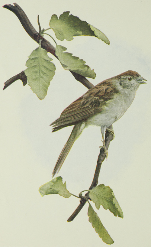 This pert and trim little bird is known by other suggestive names. Because of the character of its nest it is called the “little green hanging bird.” Its song, as translated by boys, has given it the name “chickty-bearer,” or “chickity.” Except when nesting this vireo is unsuspecting and will permit a near approach. Dr. Brewer says that “when whistled to it will often stop and eye you with marked curiosity, and even approach a little nearer, as if to obtain a better view, entirely unconscious of any danger.” Impertinent at all times, they are especially so when the nest is approached. At such times it exhibits great uneasiness, and even its expressive eyes seem to flash. Continually scolding the intruder, it utters “a hoarse mewing that is very peculiar.”
