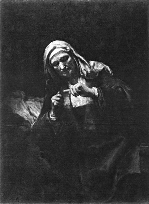 OLD WOMAN CUTTING HER NAILS, BY REMBRANDT