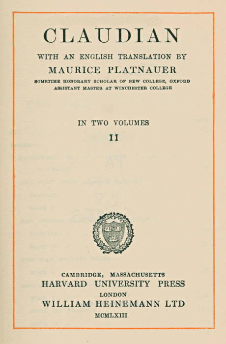 CLAUDIAN. M. Platnauer. 2 Vols.