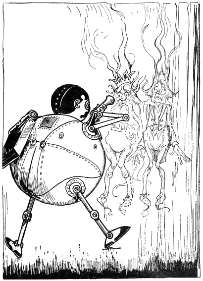 “I did,” replied Hank. “One minute I was outside of Oz—and the next minute I was inside! That was enough to give me a nervous shock, as you may guess; but to find myself able to talk, as Betsy does, is a marvel that staggers me.”