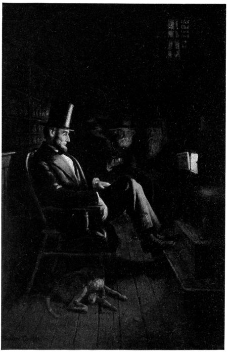 “Before I heard that story I’d heard Lincoln say a hundred times, settin’ right there in that chair, where you are, ‘Boys, we’ve got to stop slavery or it’s goin’ to spread all over this country,’ but, somehow, I didn’t see it before. Them snakes finished me. Then I knew he’d got it right and I’d got to vote for him. Pretty tough, though, for me to go back on Little ‘Doug.’ You see he was our great man, so we thought. Been to the United States Senate and knew all the big bugs all over the country. Sort o’ looked and talked great. Wan’t no comparison between him and Lincoln in looks and talk. Of course, we all knew he wan’t honest, like Lincoln, but blamed if I didn’t think in them days Lincoln was too all-fired honest—kind of innocent honest. He couldn’t stand it 12nohow to have things said that wan’t so. He just felt plumb bad about lies. I remember once bein’ in court over to Decatur when Mr. Lincoln was tryin’ a case. There was a fellow agin him that didn’t have no prejudices against lyin’ in a lawsuit, and he was tellin’ how Lincoln had said this an’ that, tryin’ to mix up the jury. It was snowin’ bad outside, and Mr. Lincoln had wet his feet and he was tryin’ to dry ’em at the stove. He had pulled off one shoe and was settin’ there holdin’ up his great big foot, his forehead all puckered up, listenin’ to that ornery lawyer’s lies. All at onct he jumped up and hopped right out into the middle of the court-room.