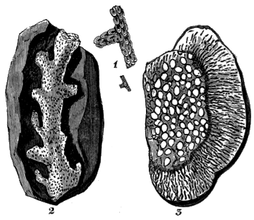 Chapter VII.—Fossil Zoophytes; Porifera or Amorphozoa; Polypifera or Corals; Bryozoa or Molluscan Zoophytes, 218. Fossil Porifera, 219. On the Sponges in Chalk and Flint, 222. Spongites, 223. Fossil Zoophytes of Faringdon, 226. Scyphia, 227. Cnemidium, 228. Chenendopora, 228. Tragos, 229. Siphonia, 230. Choanites, 233. Paramoudra, 236. Clionites, 238. Spicula of Sponges, 238. Spiniferites, 239. Ventriculites, 242. Polype in Flint, 250. Fossil Polypifera, 251. Graptolites, 255. Fungia, 256. Anthophyllum, 257. Turbinolia, 257. Caryophillia, 257. Favosites, 258. Catenipora, 259. Springopora, 259. Lithostrotion, 260. Cyathophyllum, 260. Astræa, 262. Madrepora, 264. Millepora, 264. Lithodendron, 264. Gorgonia, 265. Fossil Bryozoa, 265. Flustra, 266. Crisia, 269. Retepora, 269. Fenestrella, 270. Petalæpora, 270. Pustulopora, 270. Homœsolen, 271. Idmonea, 271. Verticillipora, 273. Lunulites, 273. Geological Distribution of Fossil Zoophytes, 273. On Collecting Fossil Corals, 276. British localities, 278.