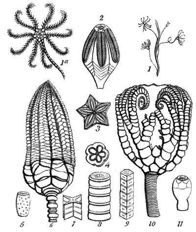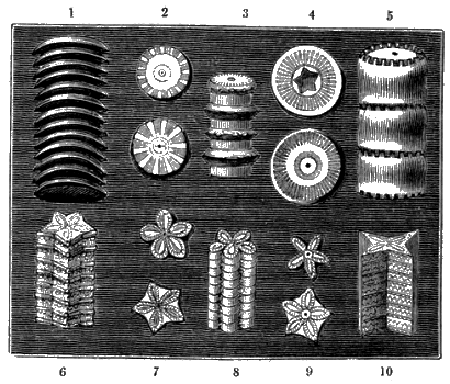 Chapter VIII.—Fossil Stelleridæ; comprising the Crinoidea and the Asteriadæ, 280. Crinoidea, 281. Pentacrinus, 282. Fossil Crinoidea, 283. Fossil Stems of Crinoidea, 284. Pulley-stones, 285. Apiocrinus, 288. Bourqueticrinus, 291. « xvii » Encrinus, 292. Pentacrinites, 293. Actinocrinus, 295. Cyathocrinus, 295. Rhodocrinus, 297. Eugeniacrinus, 297. Pentremites, 297. Cystidea, 298. Marsupites, 299. Fossil Asteriadæ, 301. Fossil Ossicula of Star-Fishes, 303. Ophiura, 304. Goniaster, 306. Asterias, 307. Geological Distribution of the Crinoidea, 308.