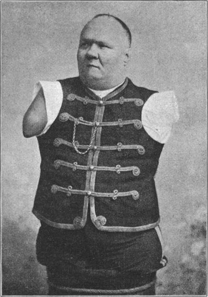 Er ist in Cincinnati (Ohio) geboren, jetzt etwa siebenundzwanzig Jahre alt und eine grosse, äusserst kräftige Gestalt. Seine seltsame Kunst producirt er in Museen und auf Specialitäten-Bühnen und bezieht stets bedeutende Gagen.