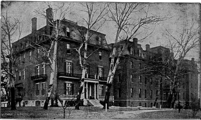 This institution meets a long-felt want, as the colored people are not admitted to the white hospitals in St. Louis. Miss J. E. Valentine, a graduate of the[Pg 547] Freedmen's Hospital Training School, is head nurse. The course in the training school is two years.