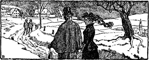 Der schwarze Schleier flatterte um sie; kalt pfiff der Wind über die Felder. Vor ihr lag der Weg in die Fremde,[319] in eine öde, schwere Zukunft. Und neben ihr ging der, den sie liebte, und der sie erretten konnte von allem Leid, der allein sie aus dieser Nacht führen konnte auf die strahlende Straße des Glückes.