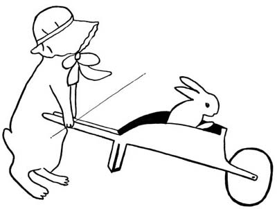 After a while he sat down on a log to rest, and whom did he see coming down the road with a wheel-barrow but Mother Cotton-Tail? She had been searching all night and all day for Bunny.