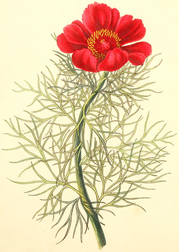 Though this beautiful plant has been so long known in our gardens, being introduced in the year 1756, it seldom grows luxuriantly, which perhaps may be accounted for by the liability of the roots to decay in cold wet soils. It is a native of Siberia, flowers in May, and makes a brilliant appearance when grown in large patches. The Pæonias grow best in a rich loamy soil, and may be increased by parting the roots, or by seed; by the latter means several most beautiful varieties have been raised of the Pæonia moutan, of which a full account may be seen in the "Hor. Soc. Trans.," vol. 6. This is a remarkably handsome genus. Some of the most ornamental are