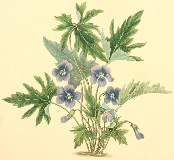 The blue variety of the Hepatica triloba, which blooms about March, is one of our most beautiful Spring flowers, and is more readily cultivated than any of the other kinds. According to Pursh, "It is a native of Canada, and is found in woods, and on the sides of fertile and rocky hills." The double variety of this plant is less common in our gardens, and the single white variety is rare. These plants like a loamy soil, and eastern exposure—and should be removed when they are in blossom. The roots do not bear to be often separated; and if divided into small pieces are frequently lost: but if left undisturbed in a congenial situation, they will attain great luxuriance. Miller says the single varieties are easily propagated by seed; but our more modern gardeners do not coincide in this opinion. The new leaves do not appear until after the flowers, though occasionally those of the preceding year retain their freshness, as in the figure here given. All the Hepaticas are ornamental.