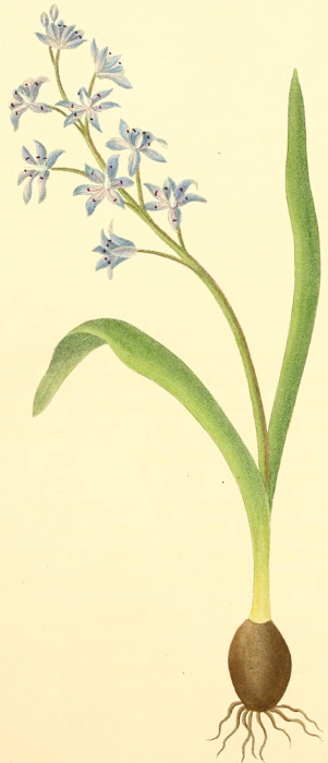 This beautiful plant is a native of the West of England, though rarely found. It likes a light soil, and should be grown in large patches, when it forms one of the greatest ornaments to our gardens in the month of March. The white variety also flowers about the same time, and forms a striking and beautiful contrast if placed alternately in the flower border. It is increased by offsets, which may be removed when the leaves decay. If this plant be covered with a hand-glass, when coming into bloom, it will expand more fully, and preserve the brilliancy of its colour. The Scilla maritima possesses peculiar medicinal properties. The most beautiful species are