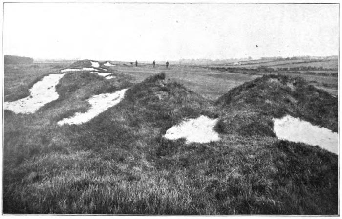 There are many positions by the seashore where a hole of this kind could be constructed, but it would be possible to make one of a similar type inland, especially[114] if the subsoil consisted of sand and the lie of the land was favourable. The seashore could be replaced by bunkers, old quarry workings, hummocky ground, rough, or even land out of bounds.