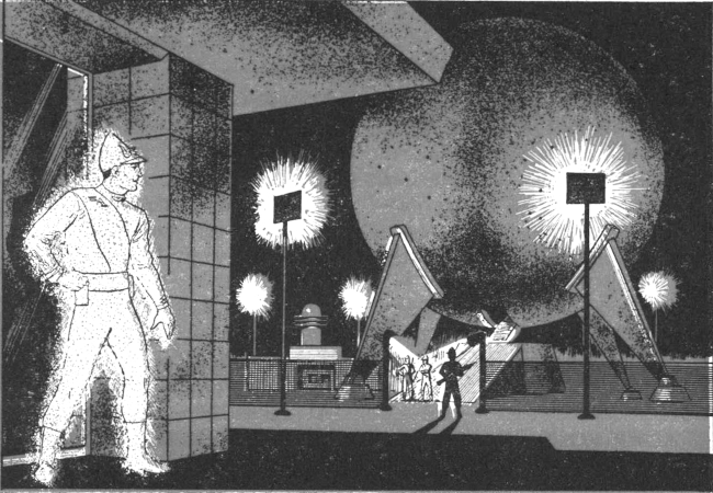 That evening, Torlyn Khy stepped out of his room and strolled over toward the spaceship. It was surrounded by guards, and it was bathed in the blaze of a battery of searchlights, but that did not bother the Valdorian. Earthmen were such stupid fools! It would be a blessing for them if the Valdorians took them over and showed them how to run their lives efficiently. On Valdor, everyone had a job and he did it. He obeyed his superiors without asking questions, and the society, therefore, was efficient.