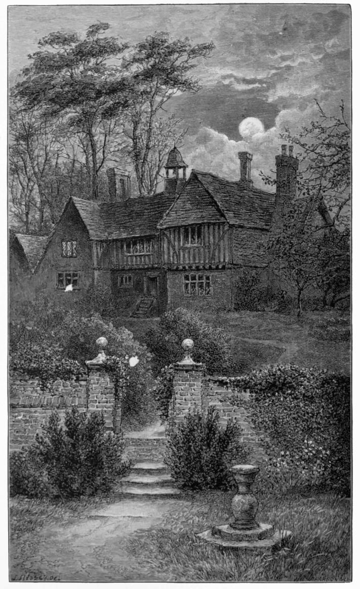 “Don’t you remember,” said my wife, as we were looking at this last drawing, “what a delightful day we spent there, and how the owner, when he discovered us sketching, at once made friends with us and showed us all over the dear old place, and how he delighted in the old armour in the hall, and how he told us that his ancestors fought both at Crecy and Agincourt—how nice it must be to have valiant ancestors like that!—and don’t you remember that low-ceilinged, oak-panelled bed-chamber with the leaden-lattice window, the haunted room, and how it looked its part; and afterwards how the landlady of the village inn where we baited our horses would have it that the ghost of a former squire who was murdered by some one—or the ghost of somebody who was murdered by that squire, she was not quite sure which—stalks about that very chamber every night. And then there were the curiously-clipped yews on the terrace, and the old carved sun-dial at the end of the long walk, and——” But the last sentence was destined never to be{5} finished, for at that moment a knock came at the door, followed by a servant bringing in a letter all moist and dripping, a trifling incident, that, however, sufficed to transport us back again from our dreamy wanderings amongst sunny summer scenes to that drear December night—our fireside travels came to an abrupt end!