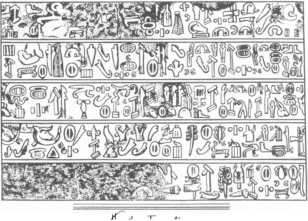 Crude hieroglyphics on an ancient statue. Depicting the early development of art and writing