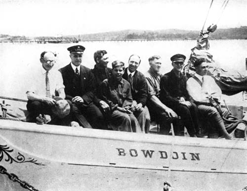 | The Bowdoin and her crew, Wiscasset, Maine, June 20, 1925. John Jaynes, Engineer; Commander Donald B. MacMillan; Ralph P. Robinson, Mate; Kennett L. Rawson, Cabin Boy; John Reinartz, short wave radio expert; Martin Vorce, Cook; Lieutenant Benjamin Rigg, U. S. Coast and Geodetic Survey; Onnig D. Melkon, moving picture photographer | 12 |