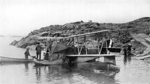 The next day the Commander flew down to Karna to see his old friend and companion of many previous expeditions, E-took-a-shoo. When E-took-a-shoo saw the plane come skimming along the land in front of his tupik he was flabbergasted. But when the Commander invited him to fly back to Ig-loo-da-houny, he simply said, “Wait till I get my mittens.” Then with utter confidence in his own safety while he was at the Commander’s side, he mounted into this strange machine and flew back to Ig-loo-da-houny with as little concern as if he had been on his own sledge.