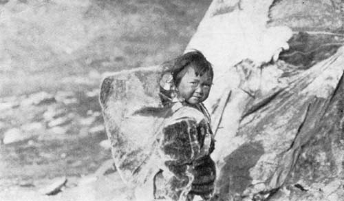 The particular branch of the race which lives on the North Greenland shore was unknown until 1818, when Sir John Ross worked his little vessel through the ice of Melville Bay to Cape York. As he lay off the Cape he observed several black dots moving towards him over the ice. These soon resolved into Eskimos, and dog sleds. On their nearer approach he entered into a conversation with them through an interpreter from South Greenland. He then told them he came from far to the south. Upon the receipt of this information they assumed an incredulous air and informed him that surely no one could live[100] in the south as all their ice drifted off in that direction and by this time that region must be absolutely choked with it.