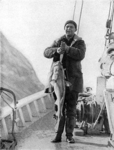| Dick Salmon with large cod jigged while stormbound in Godthaab Fiord | 123 |