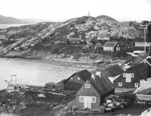 After the pictures we went up to the Governor’s house for refreshments. There we were delightfully entertained by the Governor, his genial wife and his charming daughter, and there we were served with Danish coffee, which we all agreed was the most aromatic coffee we had ever drunk. Moreover it was enriched with real cow’s cream—the first we had had since leaving Sydney. The cow that gave this cream is probably one of the northernmost cows in the world, but the cream showed no sign of having[125] been affected by the latitude, and it tasted better than it used to at home.
