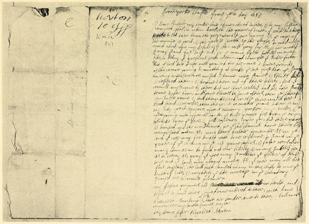 Such is our introduction to the earliest convert of George Fox: one who was destined to travel far in the service of Truth and whose steadfastness, determination, fearlessness and patience are unconsciously revealed in the numerous letters which she wrote. No insignificant place was hers in the long and bitter struggle for religious liberty, and her life’s story has left an indelible mark on the history of the beginnings of the Society of Friends.